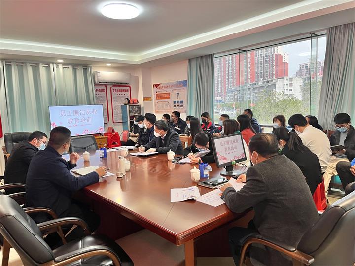 為充分發揮廉潔文化在反腐倡廉和作風建設中的作用,扎實推動廉潔文化向基層延伸,12月16日下午,能源公司開展了廉潔文化“進崗位”活動。公司黨支部書記、執行董事、總經理黎榮堅主持活動,公司全體干部職工參加會議。