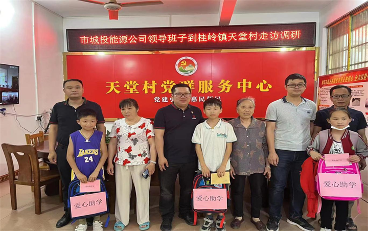 當天下午,楊維、童杰新帶隊前往城投集團定點幫扶村桂嶺鎮天堂村進行了鄉村振興推進情況走訪和愛心助學活動,向村委和駐村工作隊員詳細了解天堂村基本情況、基層黨建和鞏固脫貧攻堅成果同鄉村振興有效銜接等工作開展情況及存在的困難。楊維對駐村工作隊員所取得工作成果給予了充分肯定,并圍繞鄉村振興工作中所遇到的困難逐一研究提出了解決策略,并就下一步結合能源板塊發展業務促進鄉村振興提出了新思路。