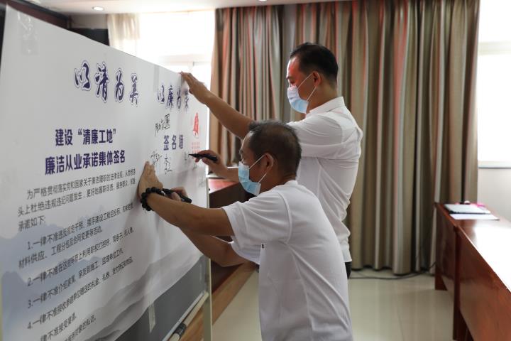 活動重溫了入黨誓詞,聘請各項目監理單位人員為“廉政監督員”,并在清廉工地承諾墻上開展集體簽名活動,立下高質量建設“清廉工地”的錚錚誓言。“廉政監督員”們圍繞自身工作實際,談履職,話清廉,對“清廉工地”建設建言獻策,扎實推進黨建領廉、文化助廉等廉政建設。